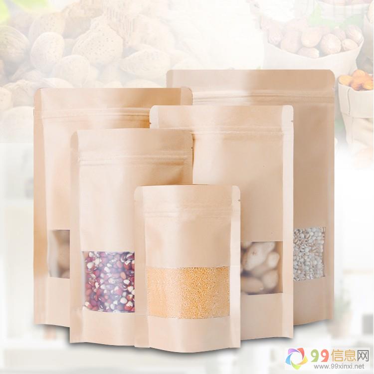开窗牛皮纸自封袋主要将牛皮纸,PE膜 [4] (用普通设备制作夹链自封袋 [5] ),哑光磨砂膜,通过复合工艺将这几种材料压合在一起,形成美观大方的具有磨砂可视的复合袋 [6] 包装袋。不开窗牛皮纸自封袋主要铝膜,牛皮纸,磨砂PE膜三层复合在一起,形成不可视不开窗口袋来自www.99xinxi.net。八边封牛皮纸自封袋是通用模具将袋型做成立体包装袋,因牛皮纸立体袋有八条边而得名“牛皮纸八边封袋”。
